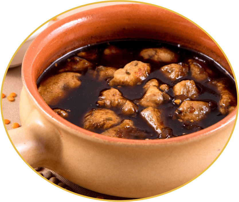 CARNE DE VITA, CEAPA, SOS DE RODIE, ULEI RAFINAT DE FLOAREA SOARELUI, SARE, PIPER, USTUROI Decor: patrunjel/seminte de rodie/lamaie